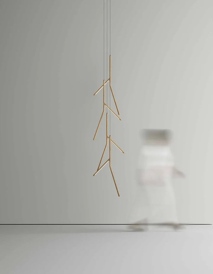 Each lamp can be curated as a single statement or part of a dramatic cluster installation, emphasizing the design’s graphic character.