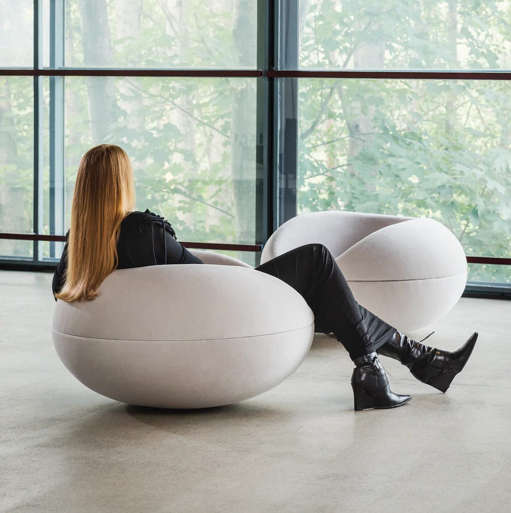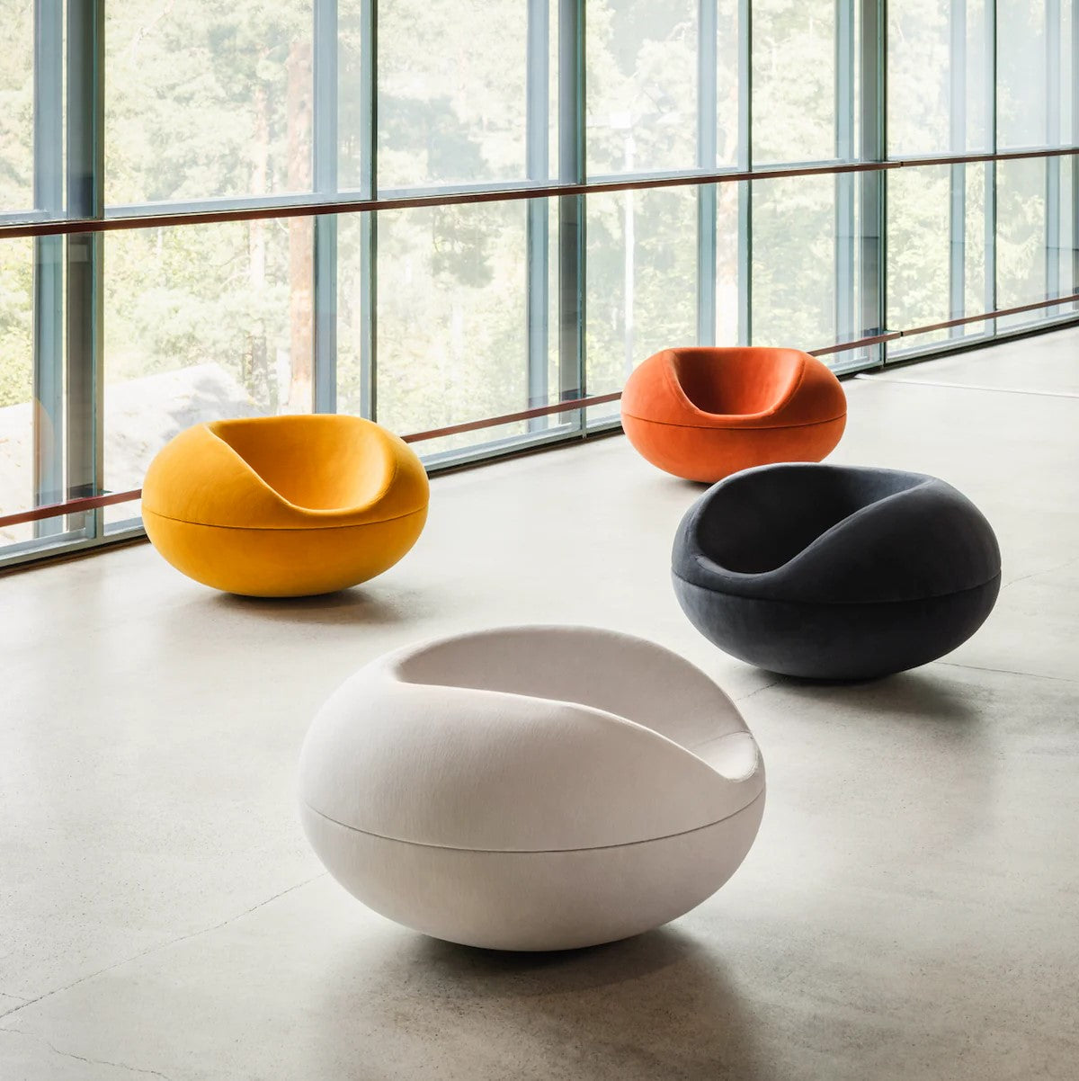 A serene retreat in any interior, the Soft Pastil transforms the iconic silhouette of Eero Aarnio’s original Pastil into a plush, inviting lounge experience. Its scooped form and gentle rocking motion offer a private, snuggly haven — perfect for quiet moments of reflection or relaxation. Designed for indoor spaces, it blends comfort with sculptural elegance.