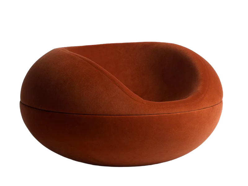 Upholstery: Luxurious velvet enveloping the form entirely, creating a tactile, comforting experience