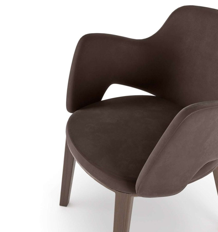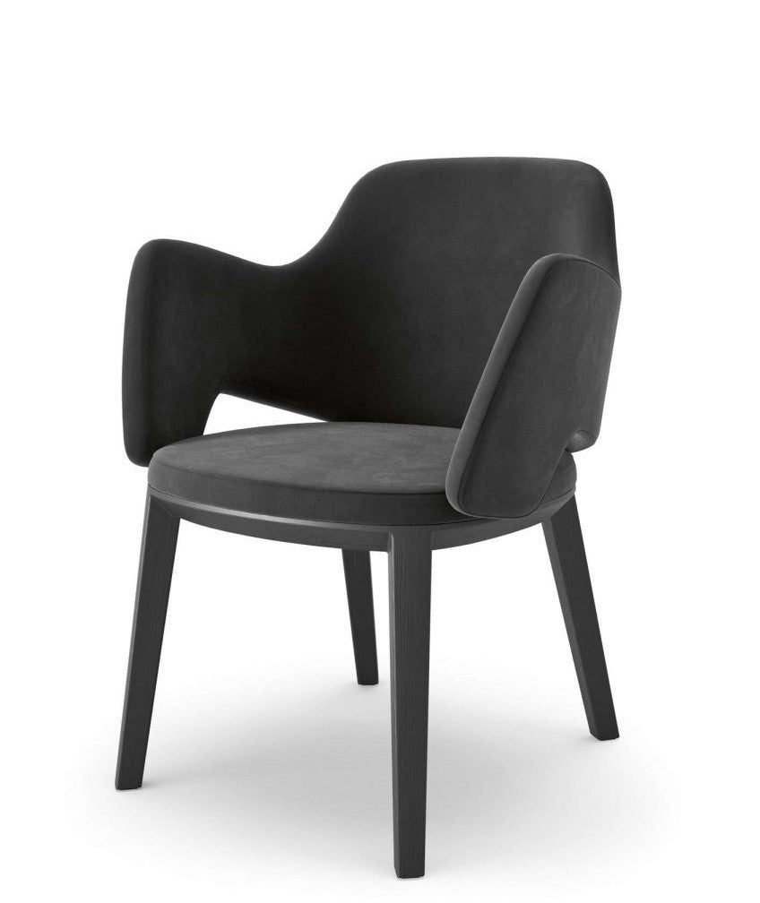The FIAM Newton Chair is defined by its disciplined geometry and tactile contrast. A solid wood structure anchors the piece, while the upholstered seat and backrest soften its architectural presence. The result is an armchair that feels both composed and inviting—equally suited to intimate conversation areas or as a singular accent within a refined interior.