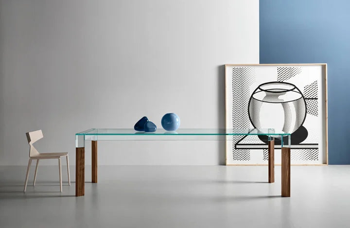 The Perseo Dining Table transforms a dining space into a gallery of refined living. Its minimalist silhouette and pristine glass top invite light to dance across the surface, while solid wood legs provide grounding warmth. Perfect for curated interiors, intimate gatherings, or entertaining with understated luxury, Perseo embodies the harmony of form and function for design-conscious homeowners.