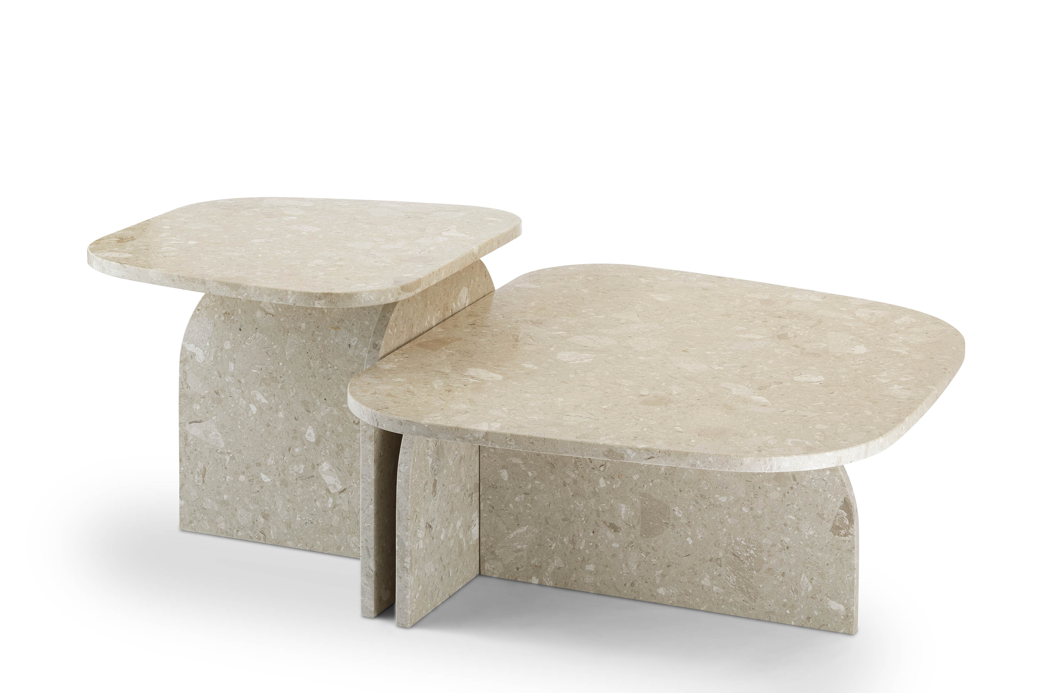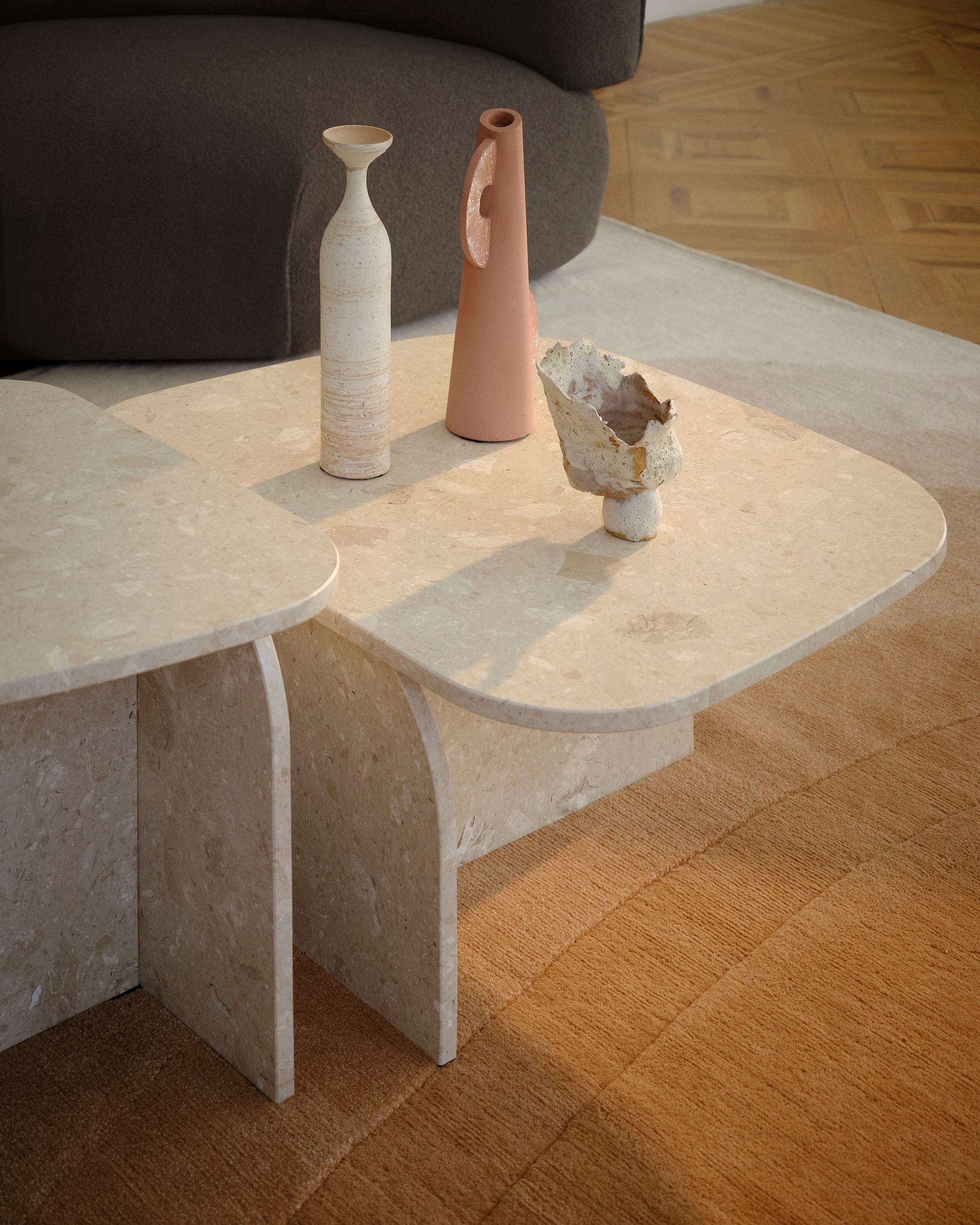 Philia is available in multiple sizes, allowing it to adapt to various seating arrangements and spatial compositions. The modularity of scale makes it suitable as a singular accent or as a family of tables layered within the same environment.