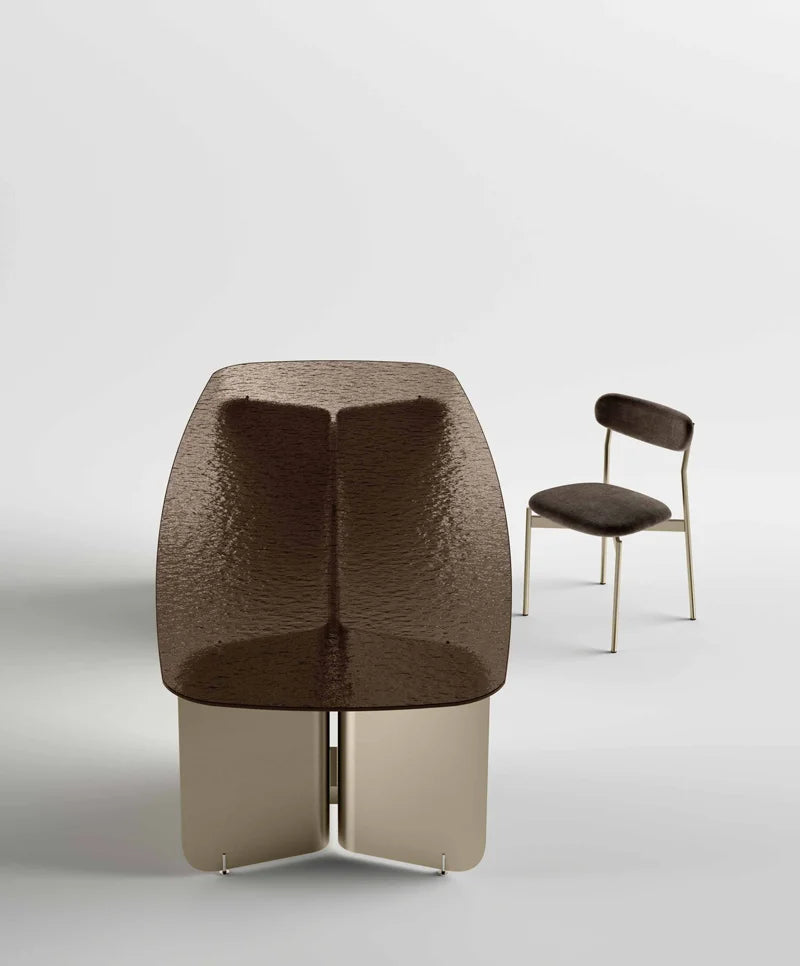 Elevate your dining space with the Pleat Dining Table, a masterpiece of contemporary Italian design by Massimo Castagna. With its sculptural metal base and refined glass top, Pleat blends bold architectural form with Tonelli Design’s signature glass craftsmanship. Perfect for sophisticated interiors, it offers a striking balance between strength and lightness.